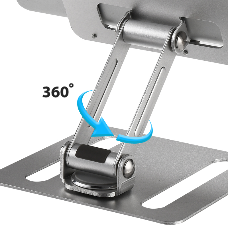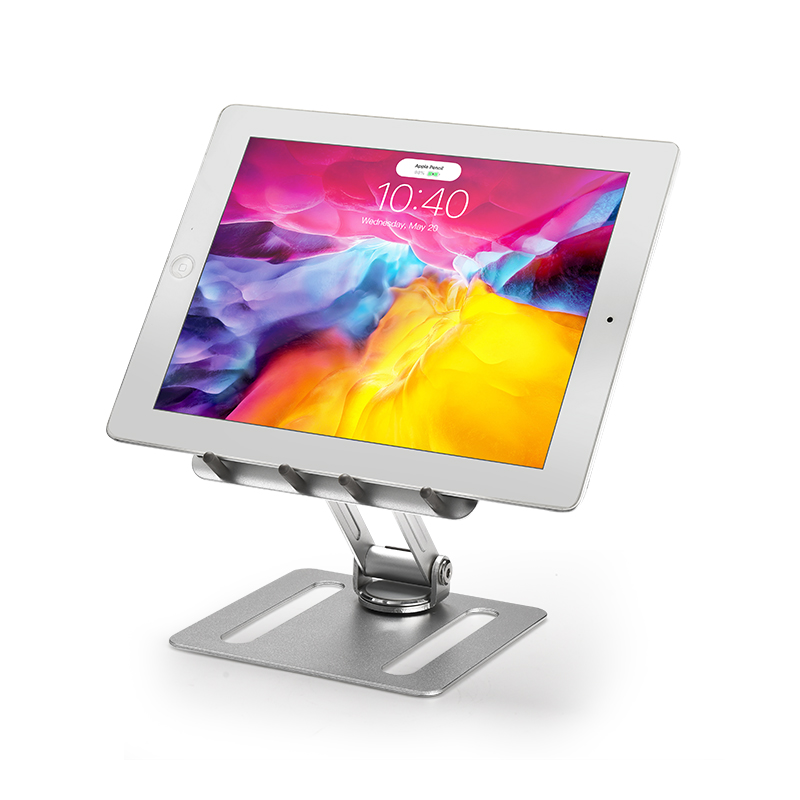 SHR02 is a tablet stand crafted from high-quality, reliable aluminum alloy.Its 360° rotation and infinitely adjustable angles provide the perfect viewing position for various scenarios like office work, entertainment, gaming, and digital drawing. Full-coverage non-slip silicone on the panel, base, and support pillars, along with a removable nut design, ensures total device protection and secure stability for your tablet or phone during any activity.